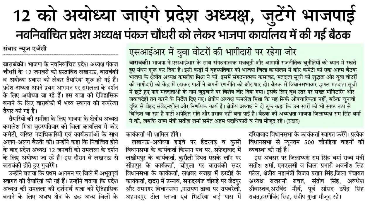 आज बाराबंकी भाजपा जिला कार्यालय पर विशेष गहन पुनरीक्षण (SIR) के संबंध में आयोजित समीक्षा…