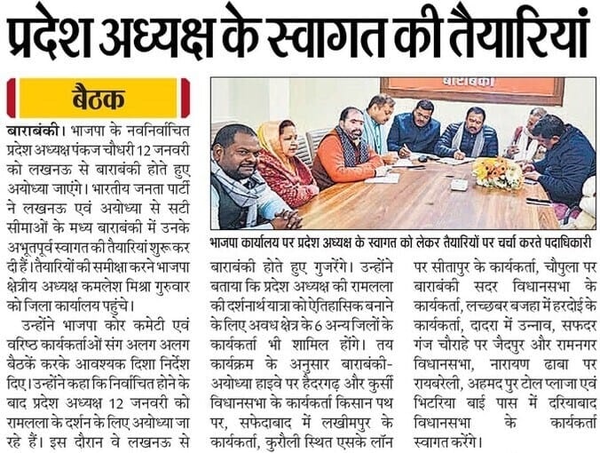 माननीय नवनियुक्त प्रदेश अध्यक्ष श्री पंकज चौधरी जी के प्रथम अवध क्षेत्र आगमन