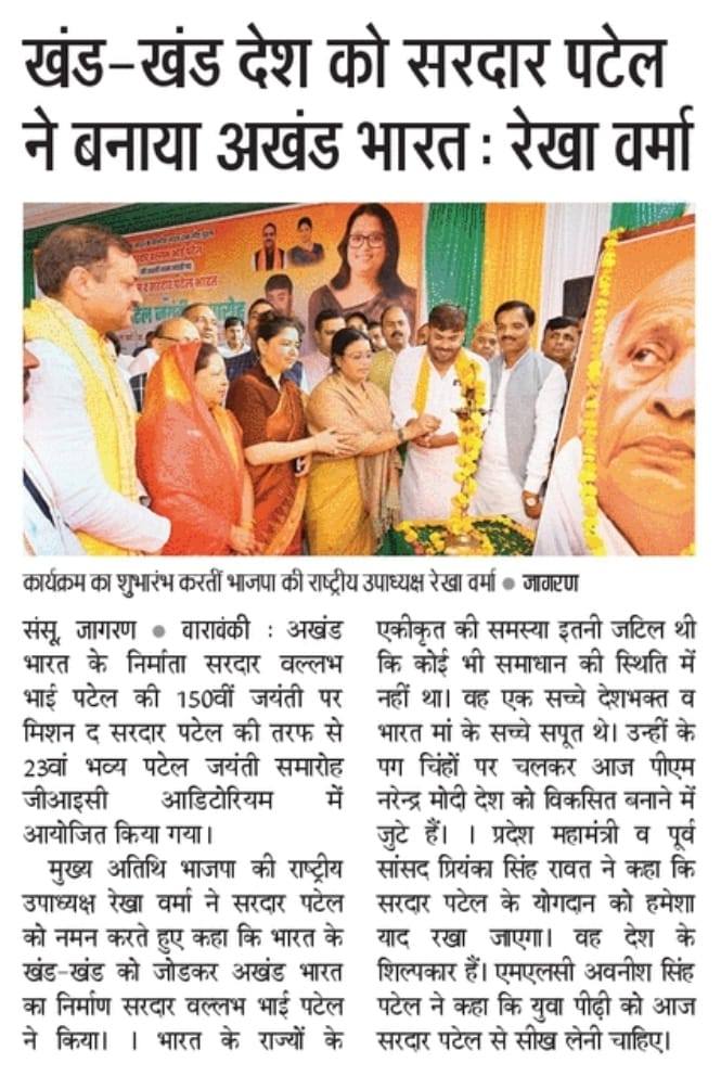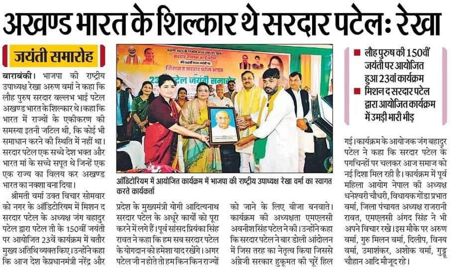 लौहपुरुष भारत रत्न सरदार वल्लभभाई पटेल जी की 150वीं जयंती के गौरवपूर्ण अवसर पर जनपद…