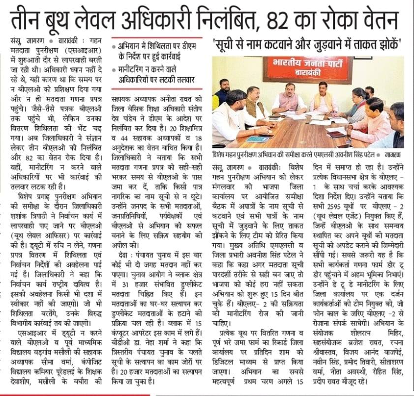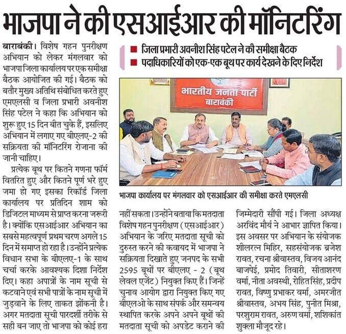 आज जनपद बाराबंकी स्थित एस. के. मैरिज लॉन में आयोजित मतदाता गहन पुनरीक्षण बैठक में…