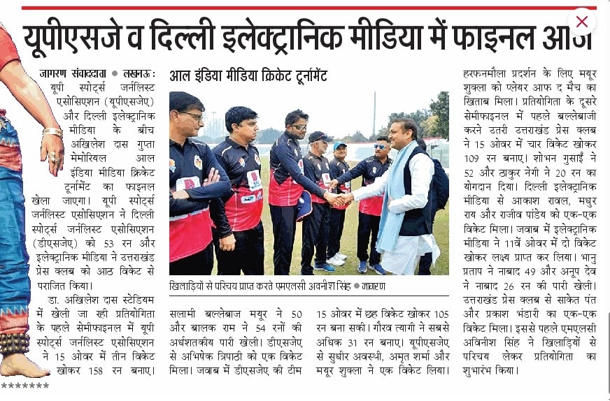 आज जनपद लखनऊ स्थित डॉ. अखिलेश दास गुप्ता क्रिकेट स्टेडियम में उत्तर प्रदेश स्पोर्ट्स जर्नलिस्ट एसोसिएशन द्वारा आयोजित ऑल इंडिया मीडिया टी-20 कप क्रिकेट टूर्नामेंट में सहभागिता का अवसर प्राप्त हुआ।
